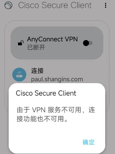安卓手机出现以下提示”由于VPN服务不可用,连接功能也不可用。“请重启一下手机。