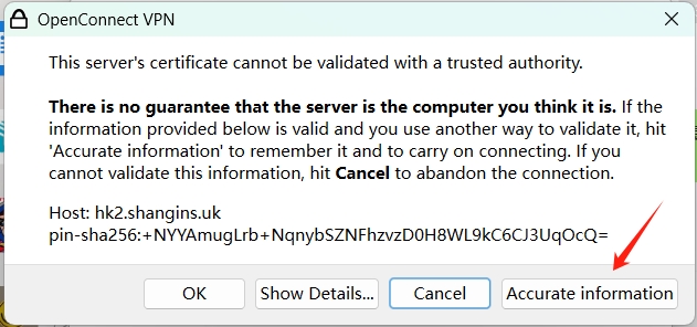 主界面点击Connect,会提示输入密码(密码与用户名一致),首次连接会弹出以下窗口提示,点击Accurate information。等待锁的标志变成绿色就是连接成功,可以用了。